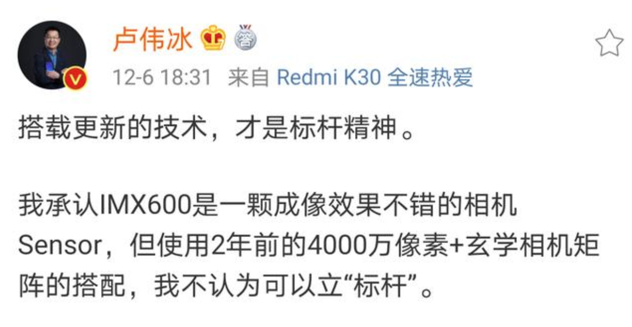 除了产品、市场、销量等各项硬指标对标荣耀外,卢伟冰在微博上更不时以友商之名对荣耀发起“进攻”。