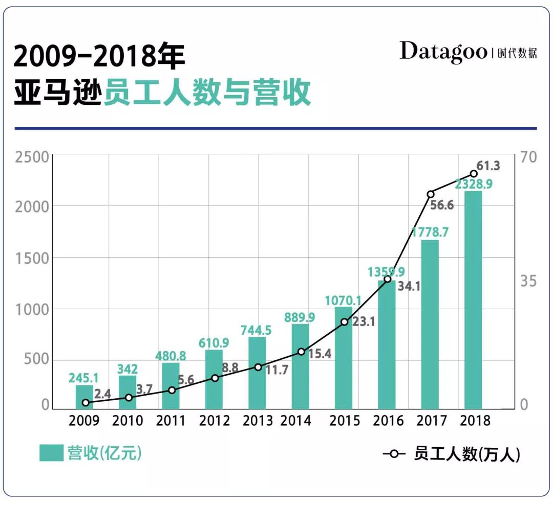 亚马逊员工人数飞速增长的原因正是企业本身势如破竹的发展趋势。