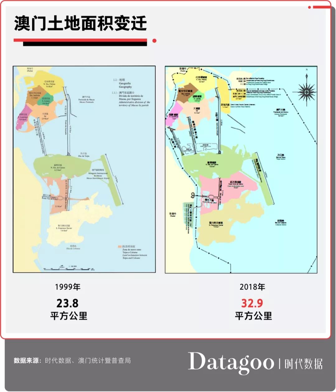 政府的钱取之于民,除了给人们发钱,当然也还得拿来给人们的生活做实事。在建设投入方面,澳门政府一直通过填海造地扩展澳门土地。澳门的土地面积从1999年的23.8平方公里填充至2019年的32.9平方公里,其中还包括参与建设了港珠澳大桥的澳门部分土地及设施。