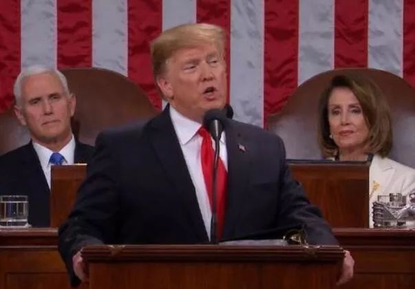 2019年2月5日晚上9点(北京时间6日早10点),美国总统特朗普在国会进行一年一度的国情咨文演讲,这个演讲被推迟了两个星期,原因是美国联邦政府之前“关门”了35天。此时的川普刚刚摆平了政府关门危机,正是意气风发的时候。