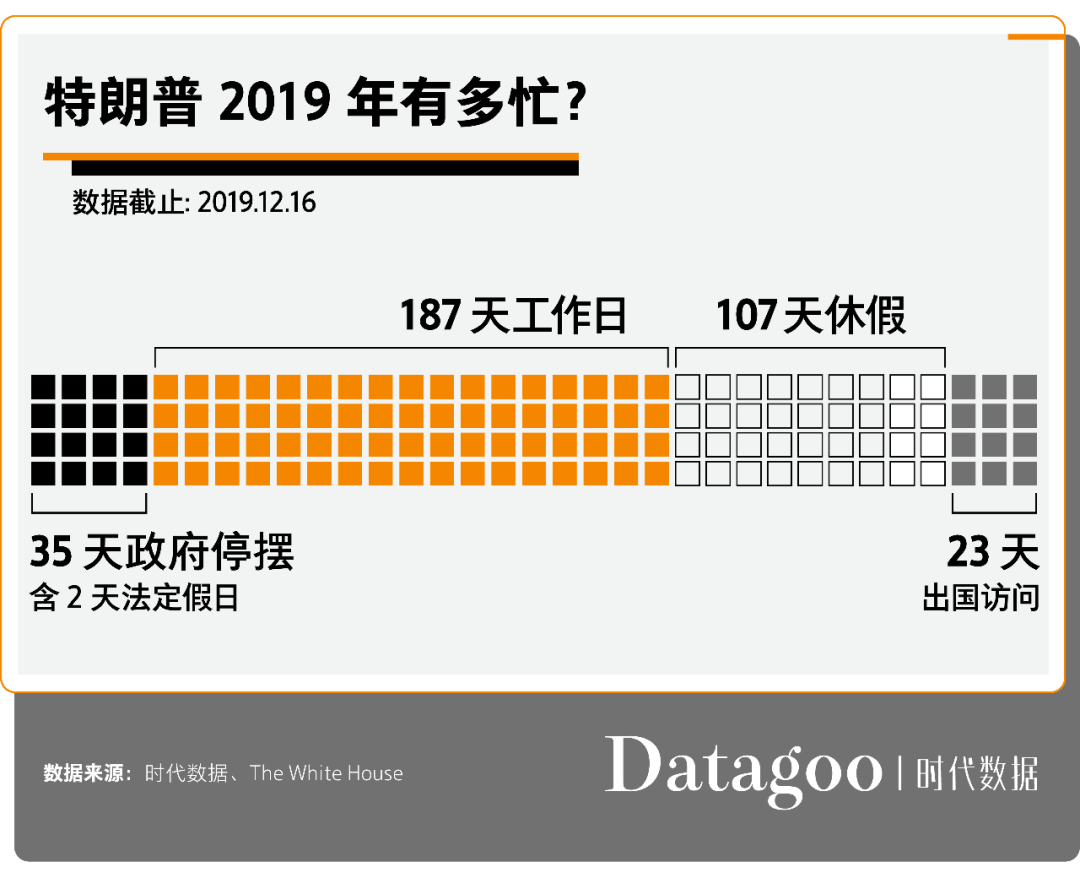 时代数据通过数据分析了川普的2019年。纵观2019年全年,川普挺忙。