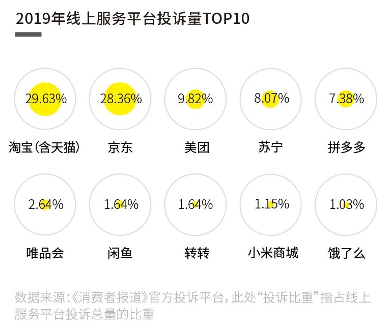 随着互联网的迅猛发展,越来越多的消费者选择在线上平台购物。近年来,互联网服务的投诉居高不下,服务质量一直被消费者诟病。从投诉数据来看,淘宝、京东、美团、苏宁易购、拼多多等电商平台的投诉总量占据前列。消费者主要反映的是商品质量问题,表示收到商品后一旦发现商品有问题,退换货困难。除此之外,在618、双11等电商购物节期间,部分淘宝、天猫商家对优惠券或者消费积分的使用条件、方法表达不明确,规则复杂暗藏消费陷阱,不完善的售后服务加大了维权难度。不仅如此,海淘商品鉴定难,也成为了消费者维权的难点和痛点。