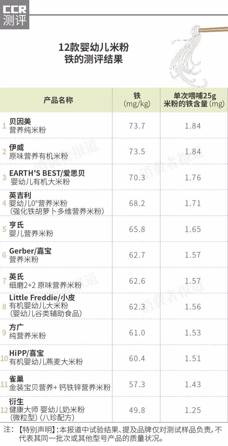 12款婴幼儿米粉对比:1款风险物超标!喜宝、爱思贝等镉含量较高