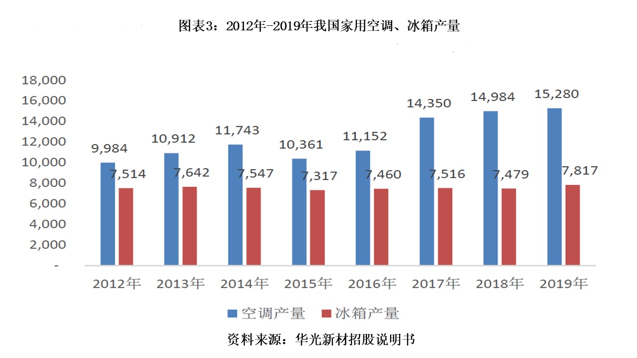 另外,时代商学院留意到,报告期内下游空调、冰箱行业产量较大且稳步增长,2018年、2019年国内家用空调产量分别同比增长4.42%、1.98%。受下游需求提振,2018年华光新材的节银钎料销量同比增长了4.89%。2018年标准银钎料、含银铜基钎料的销量也分别增长了11.61%、5.59%,2019分别增长23.75%、13.88%。