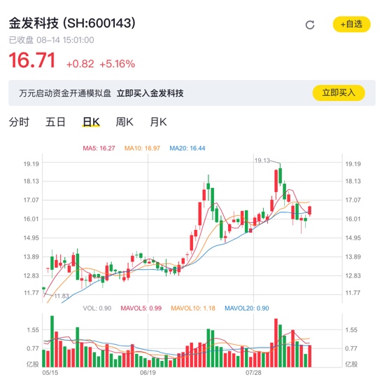同日,金发科技股票应声涨停并开启新一轮上涨行情。截至8月14日收盘,其股价升至16.71元,相较5月18日的13.24元/股,涨幅为26.21%。