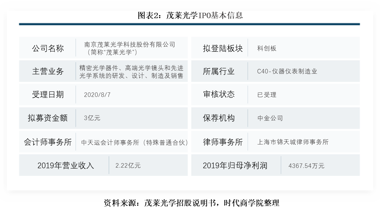 茂莱光学IPO基本信息如图表2所示。