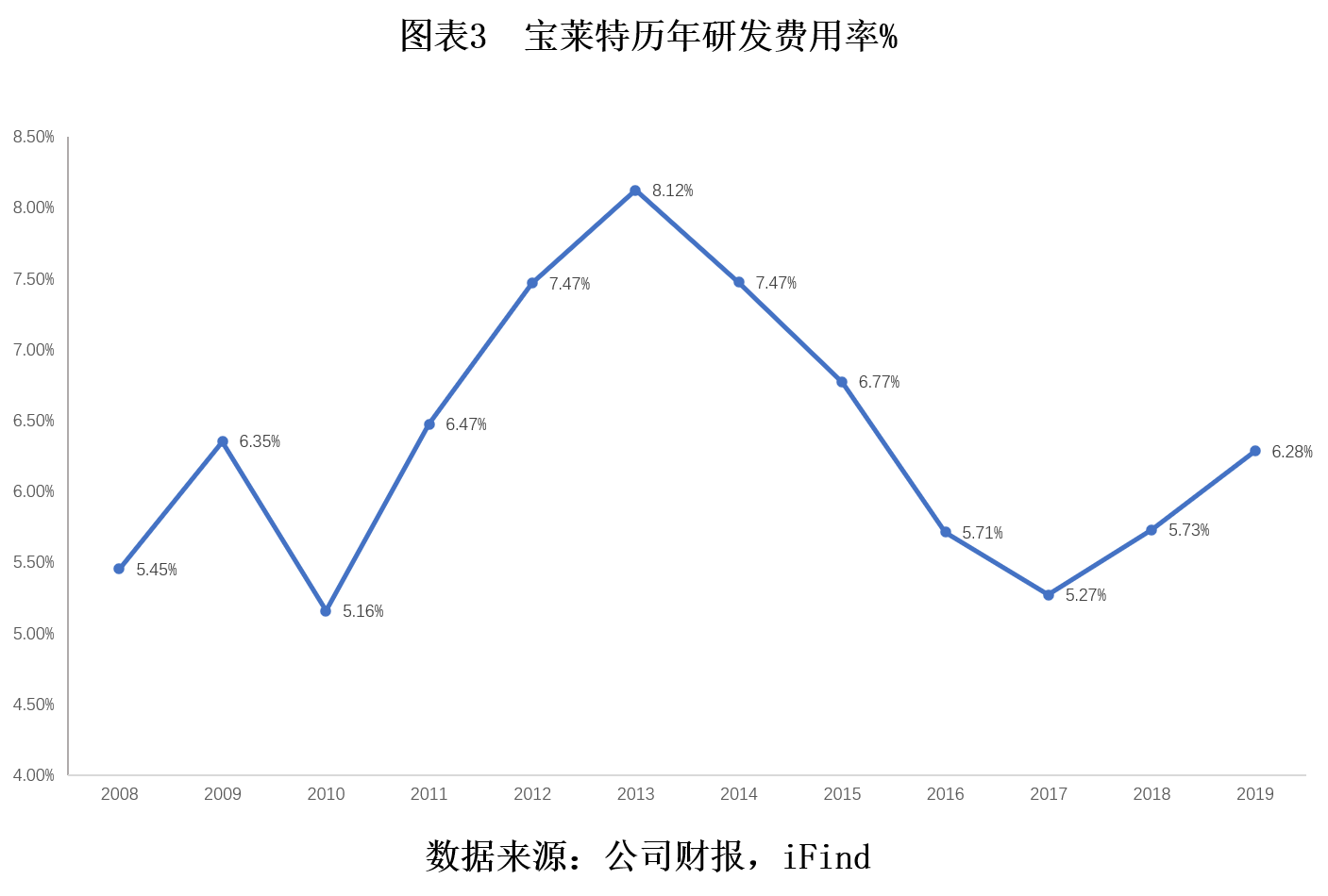 2017—2019年宝莱特研发费用率分别为5.27%、5.73%、6.28%,与医疗器械板块上市公司2017—2019年的平均研发费用率8.93%、9.07%、9.24%对比,宝莱特在研发投入上明显不足,该公司整体的产品竞争力下降,这或许是该公司健康监测产品营收规模萎缩、血透板块业务增速下滑明显的深层次原因。