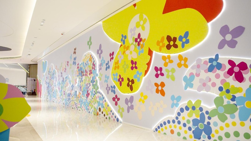 两个月后,深圳平安金融中心裙楼商业PAFC Mall联手青年艺术100、少儿100,将“Hope Flower”从线下带到线下,作为深圳最高地标的商业体,PAFC MALL希望用艺术的力量、用自身的影响力,疗愈更多市民。活动仅上线十天,PAFC Mall便从一片花田,衍变成了五彩缤纷的花花世界。