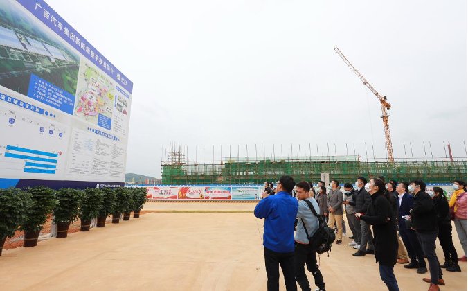 (投资者参观广西汽车集团柳东新能源车基地建设现场)