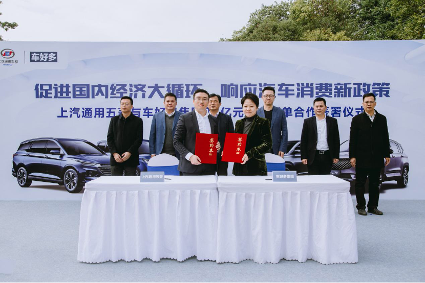 为积极响应国家扩大汽车消费新政策,上汽通用五菱牵手车好多集团签署20亿元购车订单合作协议,进一步挖掘释放城乡汽车市场潜在需求。