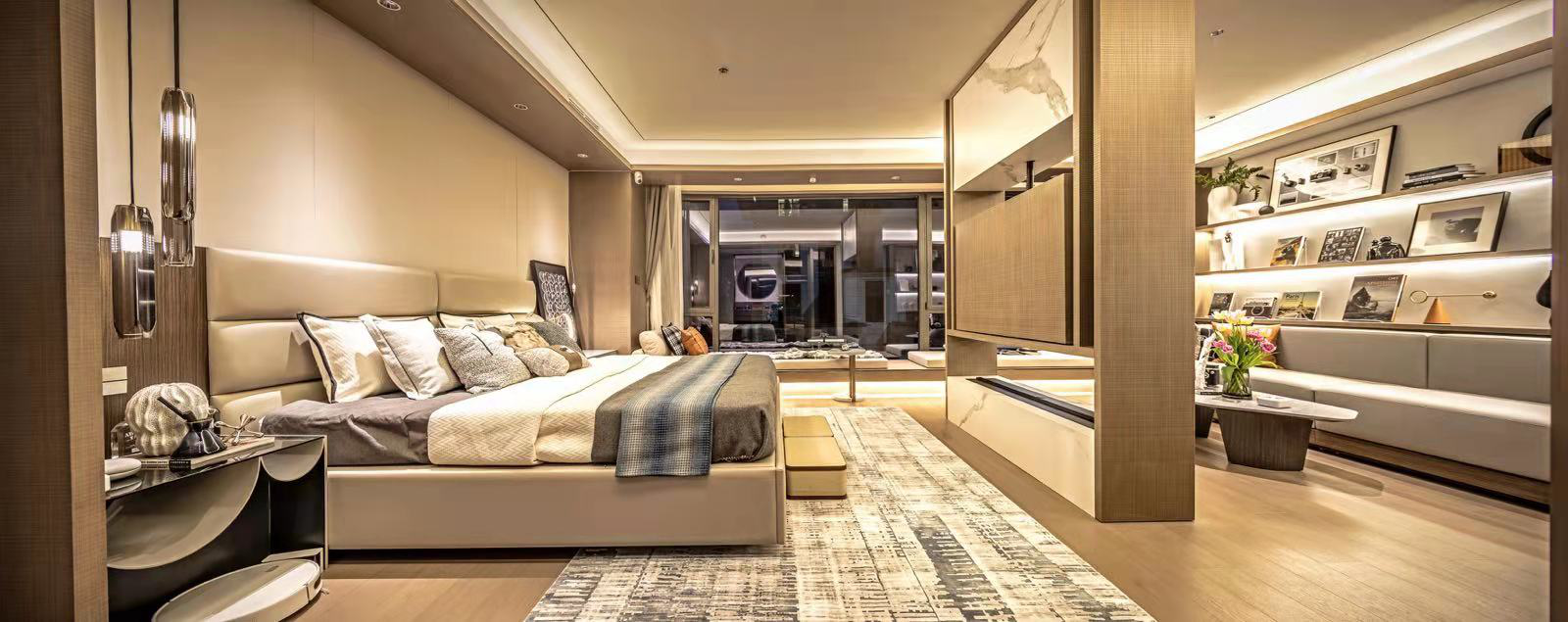 主人层奢华主卧,7.2米超宽设计,享受每一缕阳光。细节处彰显浪漫,独立私密的主人层,拥有静谧的二人空间;