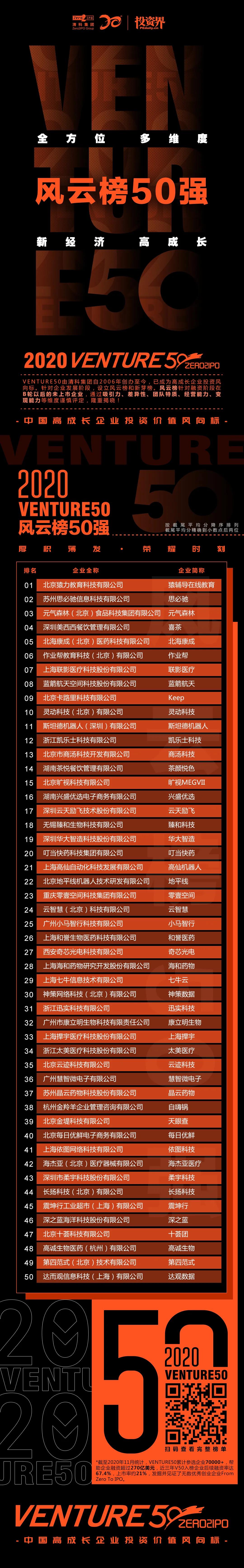 在“双循环”新格局加快形成的当下,践行价值投资已成为业内共识。而防疫新常态与经济复苏的双重要求下,创新企业的快速成长则更富有时代意义。未来,Venture50将持续以投资视角,帮助更多高成长的企业加速蜕变,为新时代注入澎湃动力与创新能量。