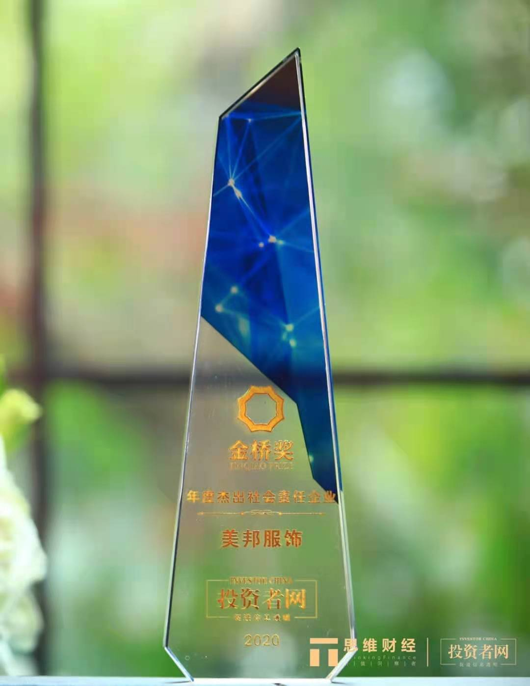 11月19日,美邦服饰荣获投资者网“年度杰出社会责任企业奖“。