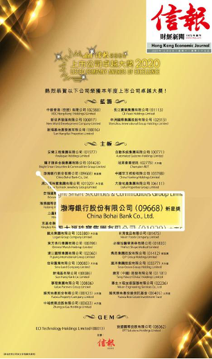 荣膺信报“上市公司卓越大奖”主板新星奖 渤海银行首家境外分行正式开业 国际化战略扬帆起航