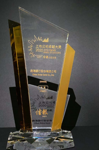 “上市公司卓越大奖”由蓝筹主板、主板大市值、GEM以及主板新星四大类奖项构成。渤海银行是今年荣膺“主板新星奖”称号的四家上市企业中唯一一家银行机构。