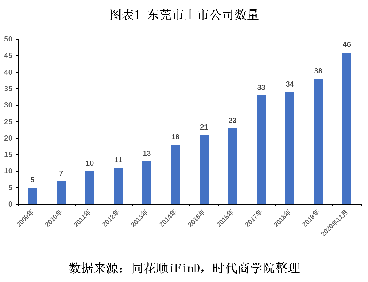 1997 —1998年两年时间内,东莞市先后有锦龙股份、东莞控股、生益科技三家企业陆续上市。但后续十年中东莞市内企业上市节奏放缓,直到2009年,东莞市第五家上市公司众生药业成功登陆A股市场。
