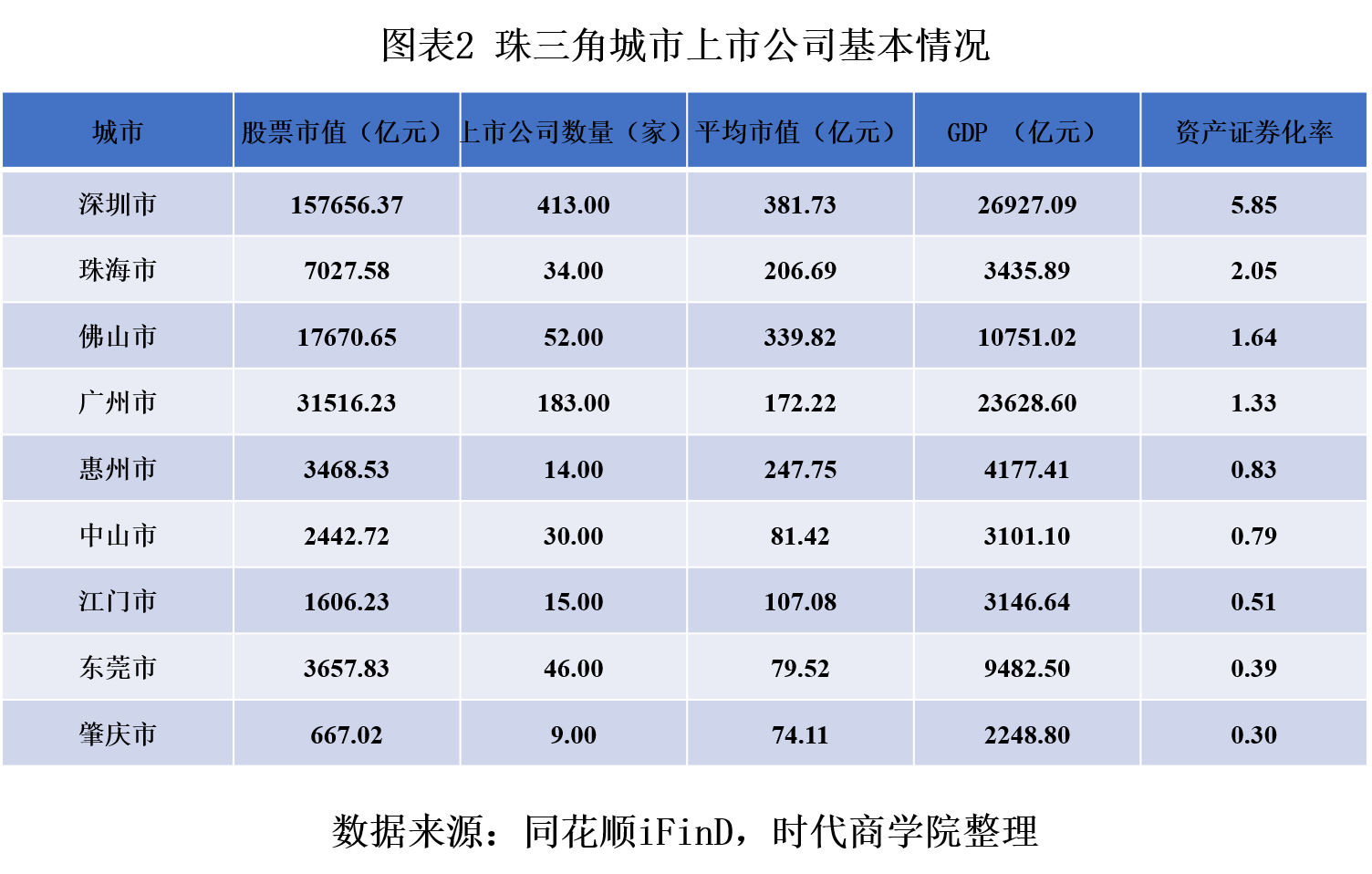 一、上市公司:数量位居珠三角第四,资产证券化率仅高于肇庆