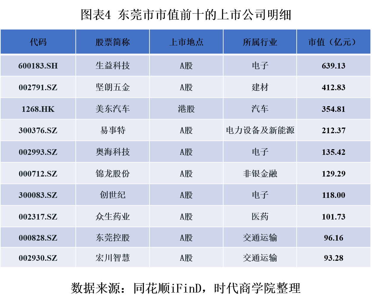 上述四个行业无论是挂牌数量、还是市值规模,均反映出东莞市支柱行业在本地经济发展中呈现一定集中度。