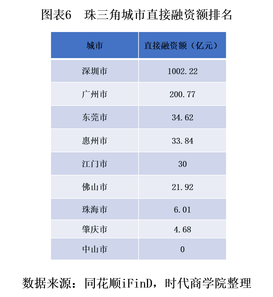 4. 直接融资额位居珠三角第三,信息技术和工业业绩增速稳健