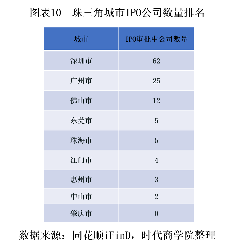除新上市企业外,时代商学院还通过IPO企业数量多寡来评估各个城市的资本市场发展节奏。IPO企业作为上市公司的后备军,数量多寡基本决定了各城市未来新增上市公司的数量,也直接反映了区域内资本市场的发展程度。