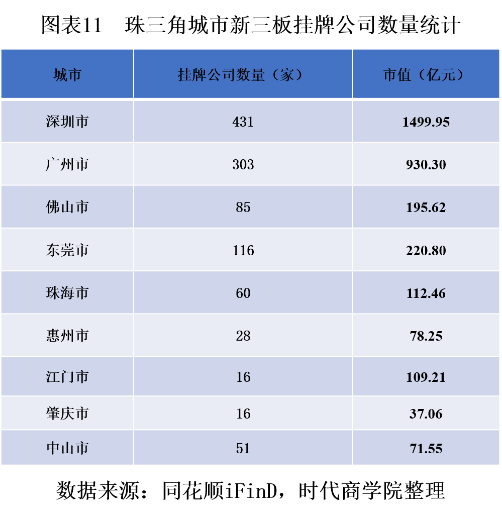1. 挂牌企业数量为116家,位列珠三角第四
