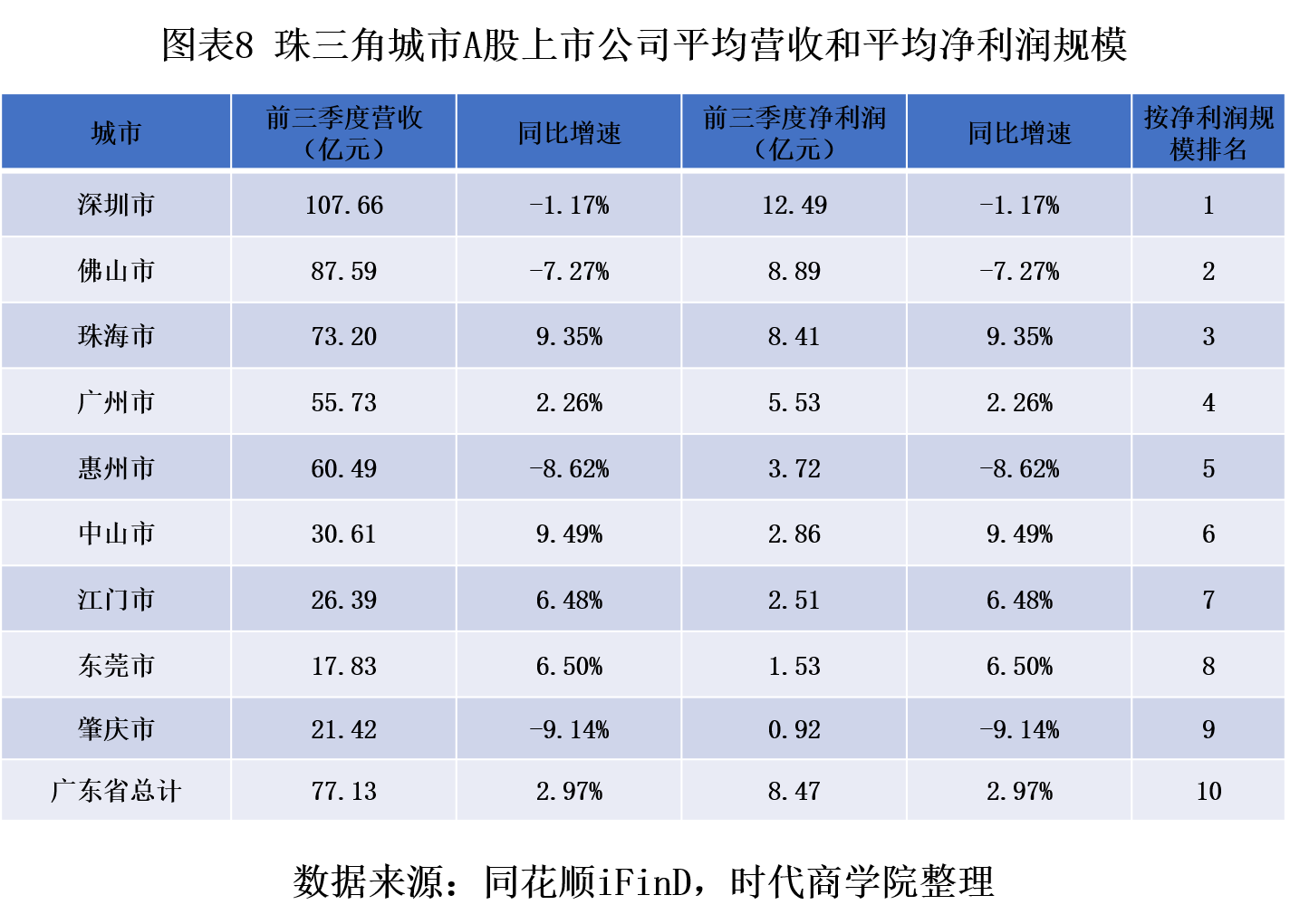 二、上市公司高质量发展排行榜:数量少但质量高,平均营收力压广州、东莞