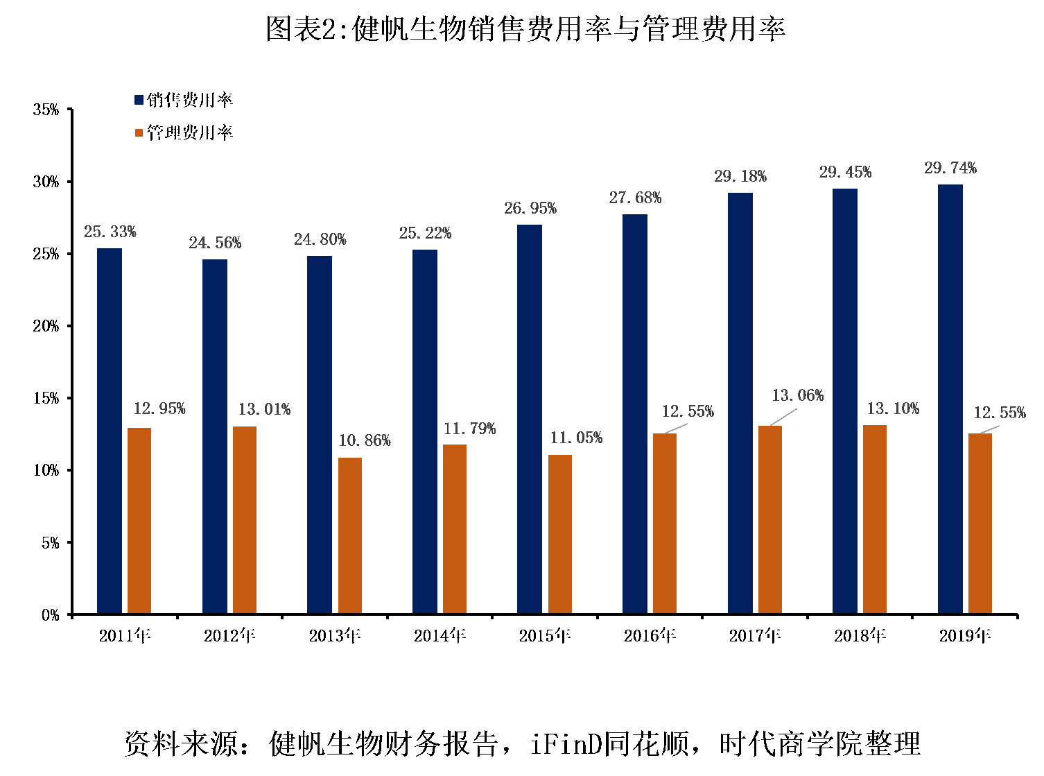 健帆生物针对市场现状建立了以学术推广和技术培训为主导的营销体系,主动替经销商承担了终端的学术推广和技术培训工作,经销商仅负责发展目标客户,根据客户需求现款提货。但由于承担了终端营销费用,健帆生物给经销商的价格相对高,这在一定程度上解释了该公司的高毛利和高销售费用。2016—2019年,该公司销售人员数量从300人增加至913人,产品覆盖医院数量从3000多家增加至5000多家,开展各类医学学术推广活动数量从2015年的3336场增加至2019年的5200多场。
