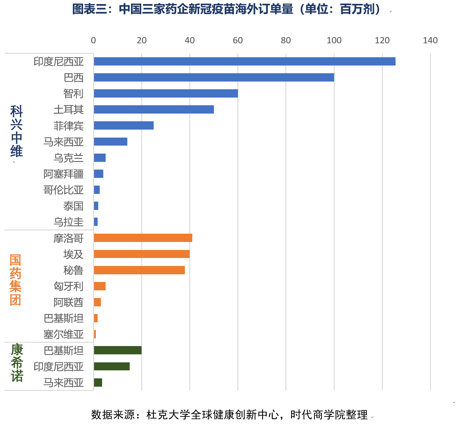 基于上述特点,时代商学院预计,在海外市场拓展方面,国产疫苗将主要面向亚非拉等广大发展中国家。目前中国新冠疫苗的海外订单也主要来自发展中国家。