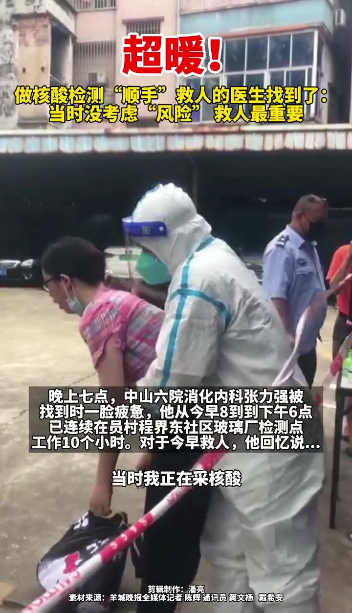 那是医患间的彼此信任:年轻女子喉咙被药片卡住,惊慌失措地冲到中山大学附属第六医院支援天河核酸采样队里,医生立马出手,化险为夷。“幸好医务人员就在身边!”大家纷纷竖起大拇指。