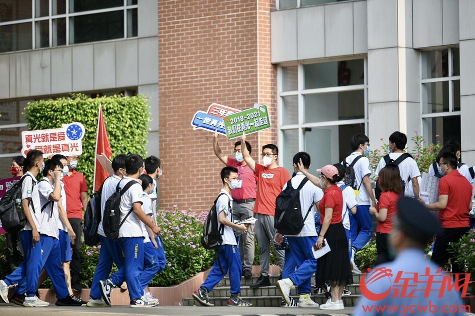广州高风险地区白鹤洞街的真光中学,考生全部为学校内部封闭备考考生。6月7日上午,学生们步入考场。