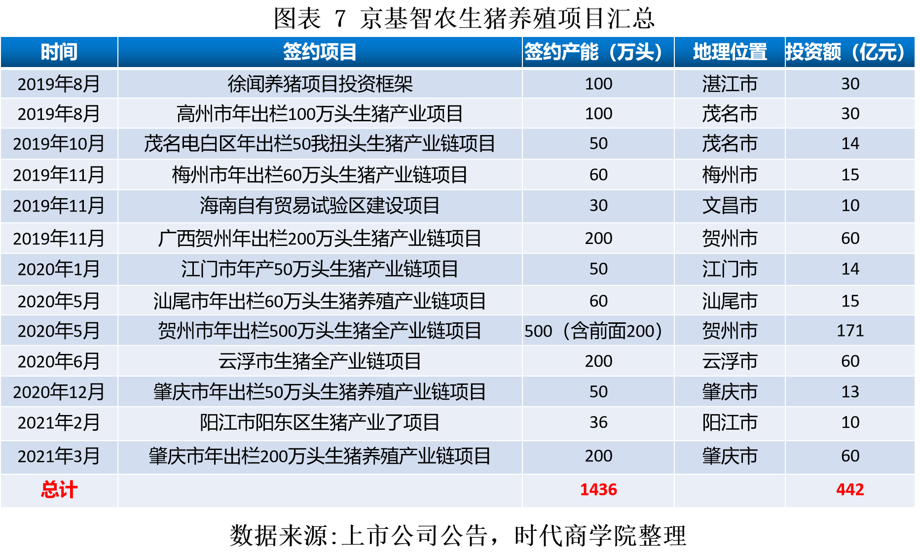 2019年以来,京基智农大力投资生猪养殖场建设。截至目前,京基智农分别与广东省高州市人民政府、湛江市徐闻县人民政府、茂名市电白区人民政府、梅州市农业农村局、海南省文昌市人民政府、广西壮族自治区贺州市人民政府签署关于建设生猪产业链项目的投资框架协议,并于2019年10月18日与华南农业大学签署《战略合作框架协议书》。