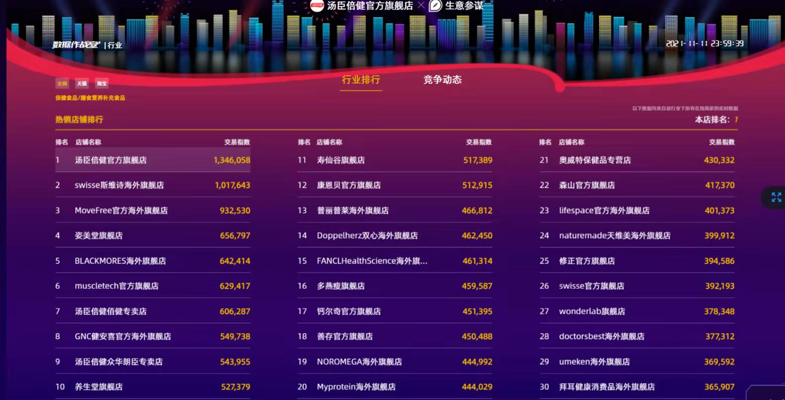 汤臣倍健蝉联天猫、京东双11“双冠”,凸显行业领导地位