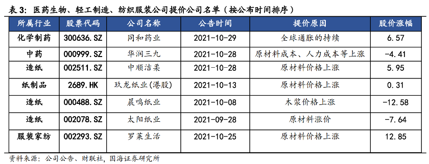 国海证券的分析师就发现,所有提价的公司都将原因归咎于原材料价格上涨,其中包括大宗化学品及蔬菜等原辅材料,还有36.4%的公司提到了人工和运输成本的上涨。