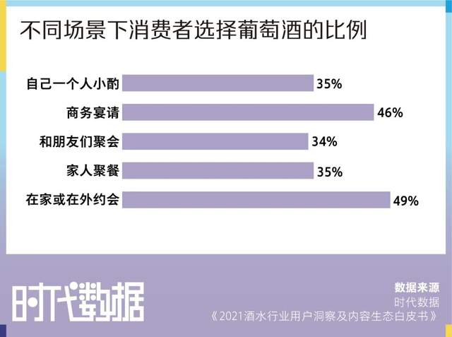 调研中有受访者表示:“我认为在阳光明媚的下午于阳台享受阳光时,拿着一杯葡萄酒望向外面的风景,是一种有品味的生活享受。”也有受访者表示:“我的工作比较枯燥,睡前喝些葡萄酒能舒缓一天的疲劳。”