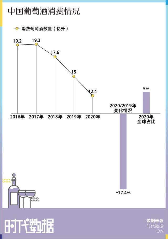 传统葡萄酒行业正在失去年轻人,而当任何行业如果没有未来的消费者,都堪忧。葡萄酒消费量急速下滑也在印证着这一现象。中国作为第六大葡萄酒市场,2020年葡萄酒消费量约为12.4亿升,与2019年相比急剧下降了17.4%。而这也是中国在葡萄酒消费量方面连续第三年急剧下降。