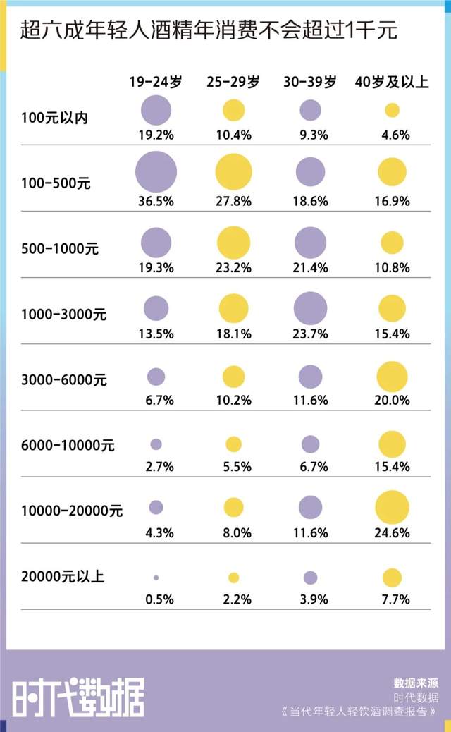 这届年轻人的饮酒文化已经与老一辈迥然不同。传统的“酒桌文化”中,个人感受不重要,面子与排场是第一位。这也是传统名酒价格动辄上千,包装“根正苗红”的缘故。而对于年轻人来说,饮酒微醺胜过买醉,放松享受胜过社交需求,酒价太贵反而会成为一种负担。《当代年轻人轻饮酒调查报告》显示,近四成年轻人的饮酒预算在100—500元之间。