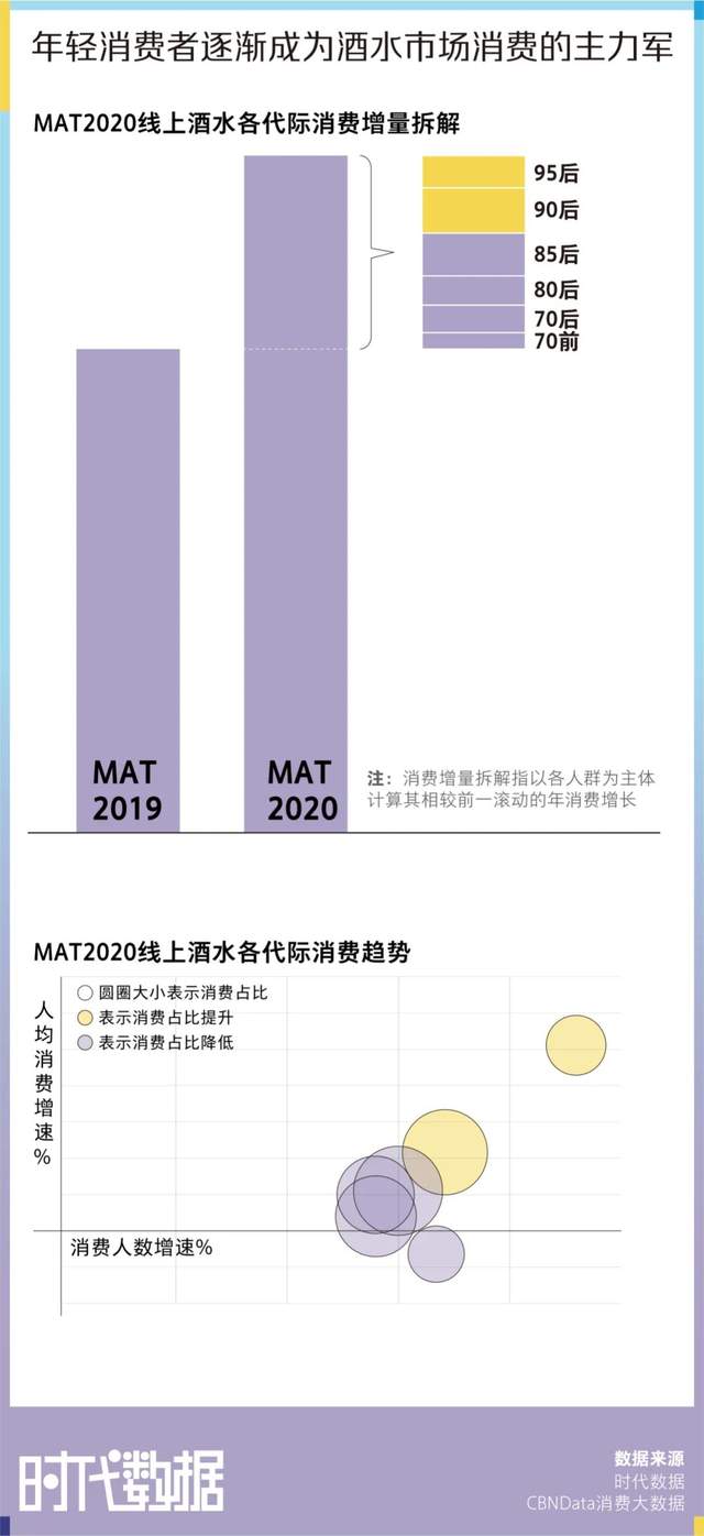 据《2020年轻人群酒水消费洞察报告》从消费人数和人均消费水平来看 90后与95后消费者皆呈现增长趋势,年轻消费者逐渐成为酒水市场消费的主力军。在生活方式以及消费取向已经和父辈发生巨大变化的情况下,他们看上去似乎也很难会主动爱上葡萄酒。
