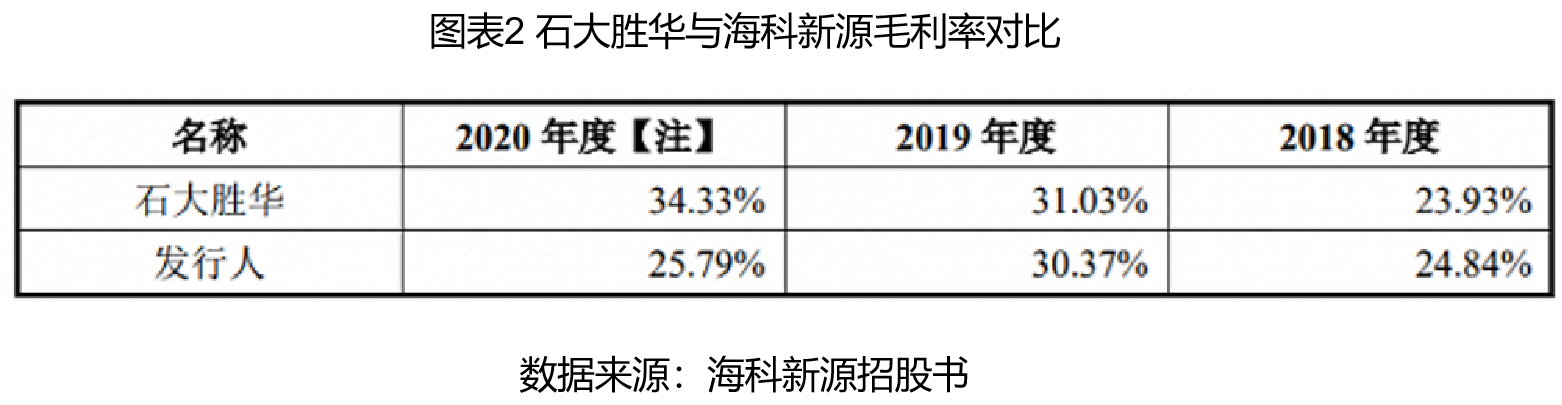 除了实际经营数据存在明显矛盾外,从销售价格、毛利率、技术研发投入、产能扩建节奏及规模来对比,在不违背商业常理的前提下,海科新源亦难以在短期内实现弯道超车,直接跃过石大华胜,抢占行业第一的市占率。