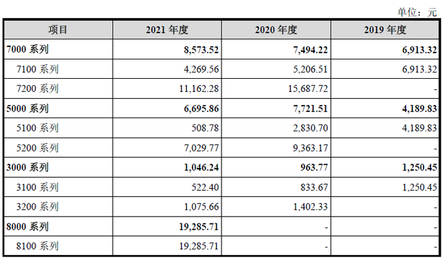 对此,公司在招股书中表示,7100系列产品和7200系列产品上市初期定价较高,产品上市后随着市场变化单价逐步下降,5000系列、3000系列产品整体变动趋势与7000系列产品相似,同时公司对库存的5100系列产品和3100系列产品进行降价清理销售,拉低了当期销售平均单价。