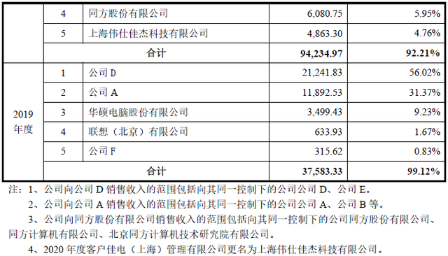 这其中,第一大客户公司A及公司D为海光信息关联方,关联销售合计占比分别为87.39%、55.83%和 65.95%,关联销售占比过半。
