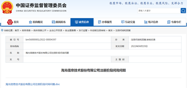 4月19日,已提交科创板IPO注册的海光信息技术股份有限公司(以下简称“海光信息”)获证监会问询,要求海光信息综合分析评估公司的持续经营能力,并根据分析结果在招股说明书中进行“关于持续经营能力”方面的风险提示;结合主要产品迭代情况,分析各代产品对AMD已授权技术的依赖程度;说明主要产品是否对关键上下游企业存在依赖。
