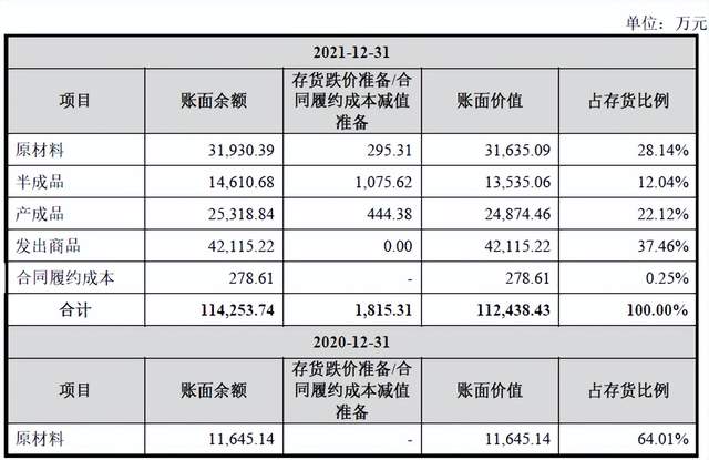 据招股书显示,海光信息存货主要为原材料、半成品、产成品、合同履约成本和发出商品等,2021年存货增幅迅猛,从2020年期末的1.82亿元增至2021年期末的11.24亿元,占流动资产比从5.92%升至29.05%。