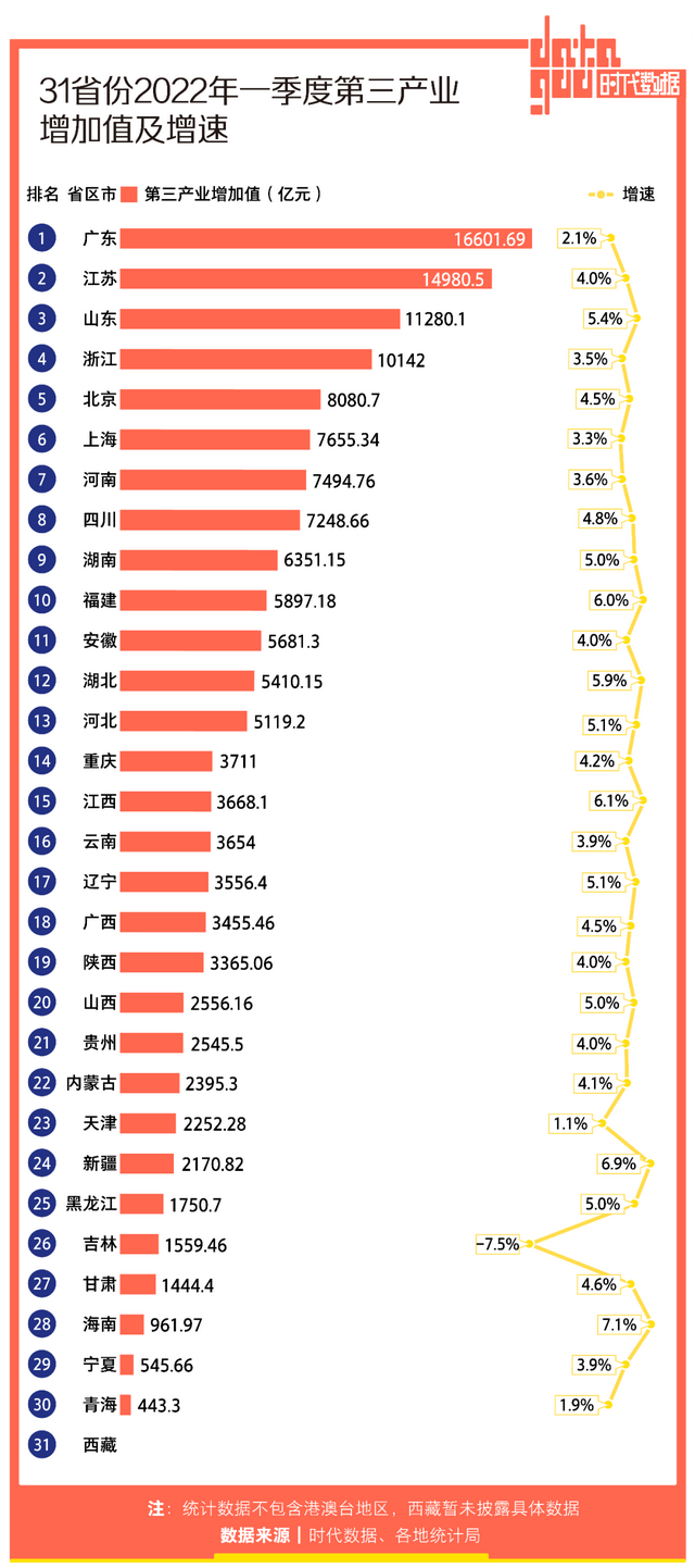 广东一季度第三产业增加值突破1.6万亿,高居第一