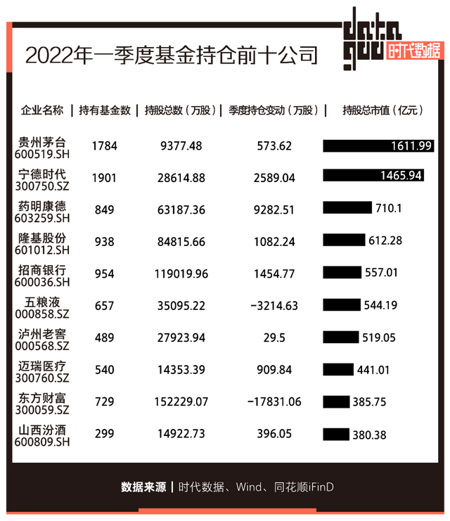近日,随着公募基金2022年一季报的悉数出炉,时代数据发现,以贵州茅台(600519)、五粮液(000858)、泸州老窖(000568)、山西汾酒(600809)为首的白酒企业依然备受基金追捧。
