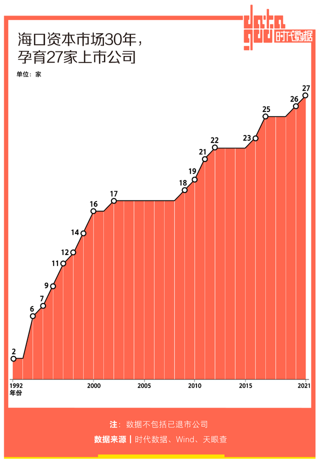 自此,海口资本市场已经历30年风雨。截至2022年5月16日,海口一共拥有A股上市公司27家。其中,2000年之前是海口企业登陆资本市场比较集中的时期,现仍有16家公司是在2000年及以前上市的。此外,2021年海口诞生了首家科创板上市公司金盘科技(688676)。