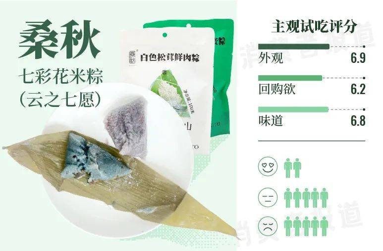 都说冷色系的食物会令人食欲大减,蓝色、紫色、绿色的粽子看着就让人不敢动筷。桑秋的这款七彩花米粽真的有点让试吃官们“瑟瑟发抖”。