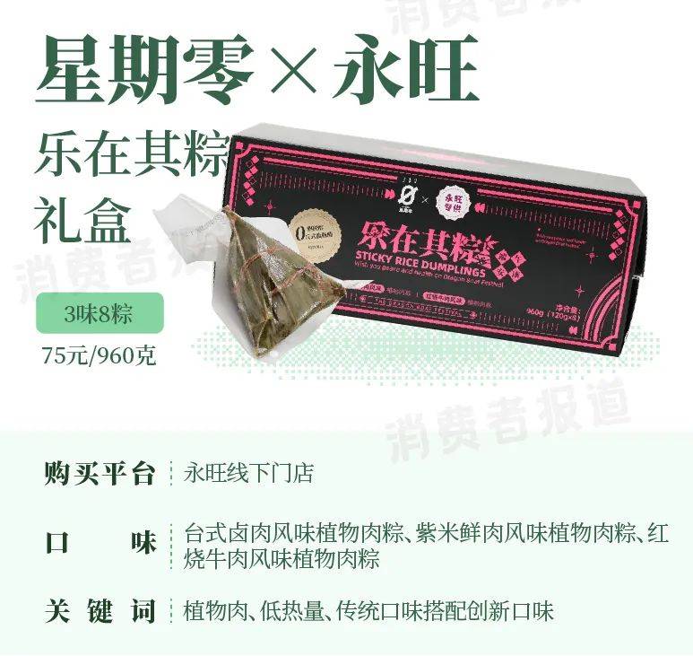 星期零和永旺在今年端午推出的这款乐在其粽其实已经是星期零连续第三年推出的植物肉粽产品,其曾分别在2020年与味BACK、诸老大,2021年与蔚来NIO Life、诸老大联合推出过植物肉粽子礼盒。