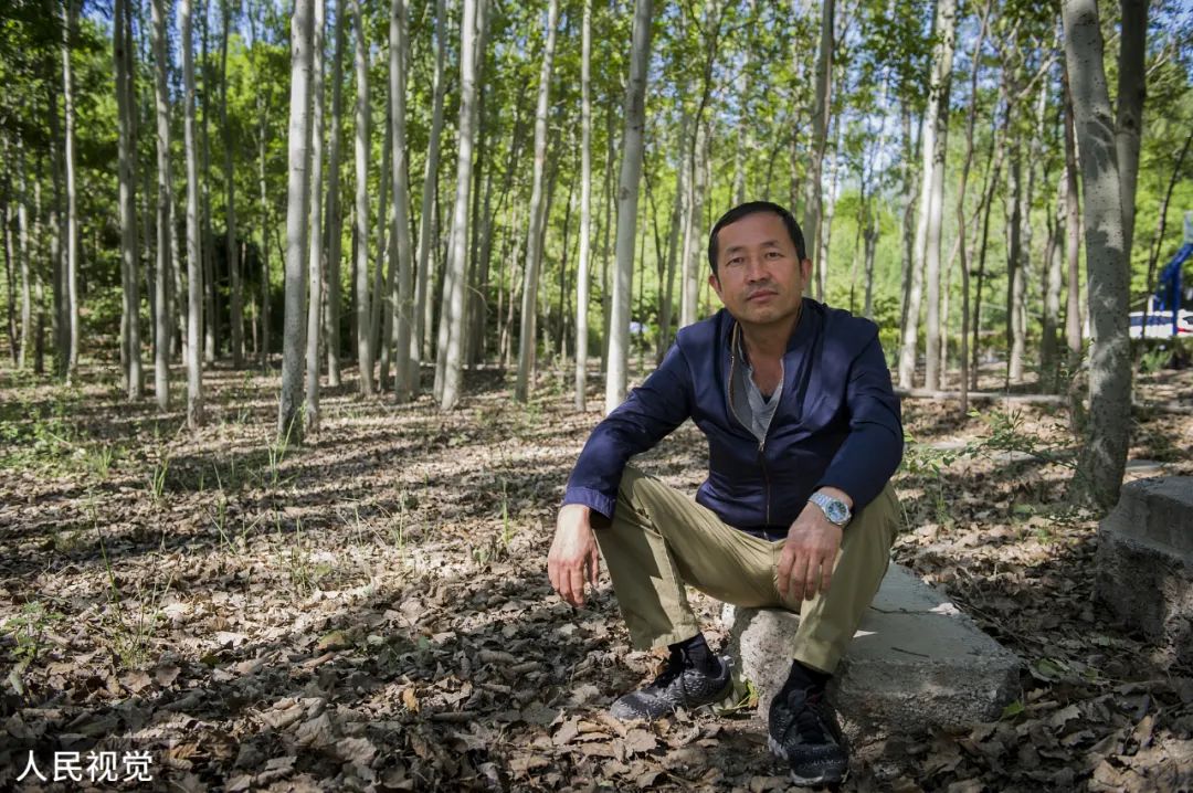 贺兰山沿线有很多砂石开采企业。过度开采之后,留下一个个卵石堆和大砂坑。马建国和同事们开始了长达13年的采砂复垦区绿化工作。/人民视觉