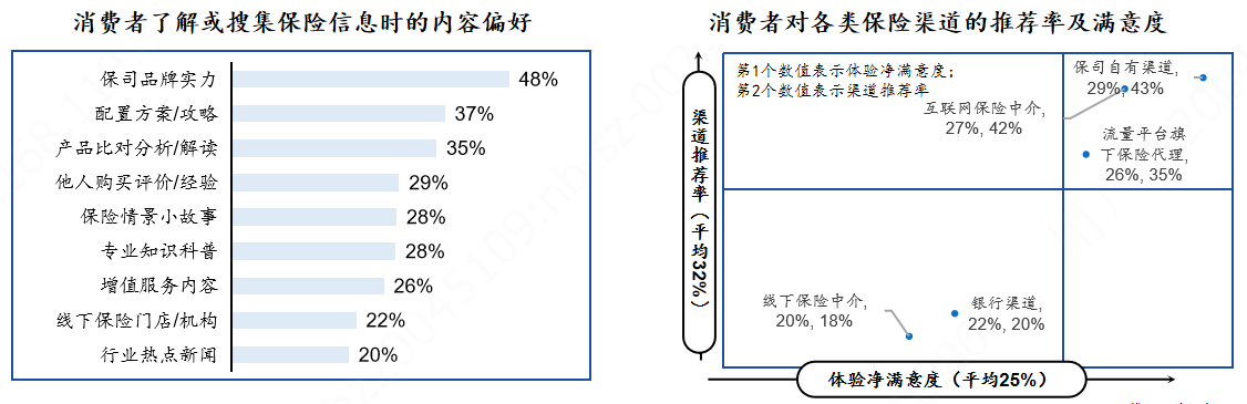 从保险消费5类人群来看,不同的人群有着不同的保险需求。慧择·奇点保险研究院认为,不同人群,应匹配适合的保险产品和服务。互联网保险中介可以为客户链接更丰富的产品、提供更透明的信息,并站在客观角度选择合适的保险产品并配置组合方案,因此逐渐受到越来越多的消费者青睐。以白皮书“消费者了解或搜集保险信息时的内容偏好”排行显示,除了保司品牌实力占48%外,最关注的内容为:配置方案/攻略占37%、产品对比分析/解读占35%。
