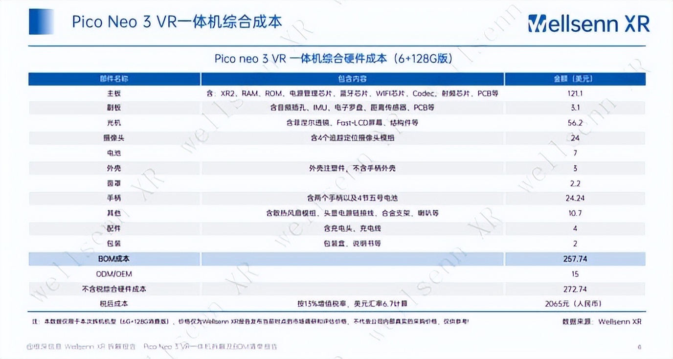 图片来源:Wellsenn XR《XR硬件拆解及BOM成本报告 Pico Neo 3 VR一体机》